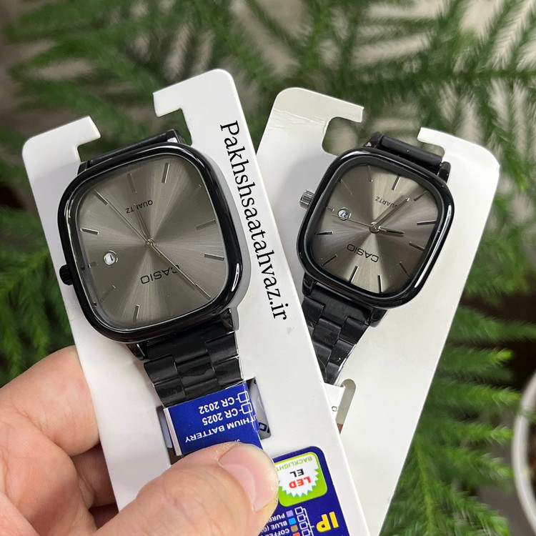 ساعت ست کاسیو اولدمانی مربع – طراحی کلاسیک|مشکی صفحه دودی