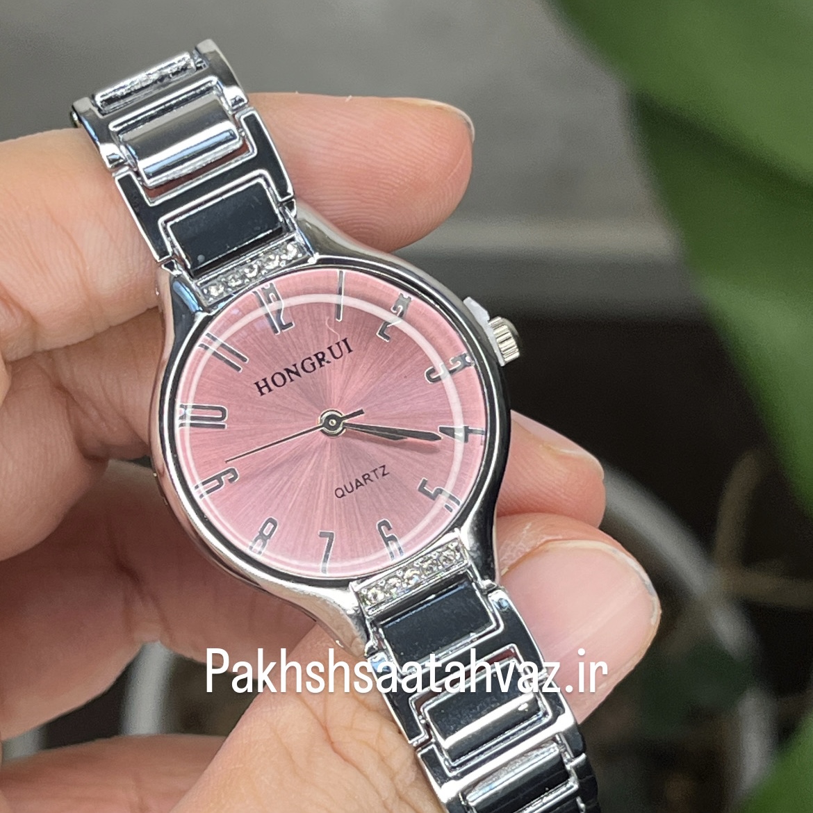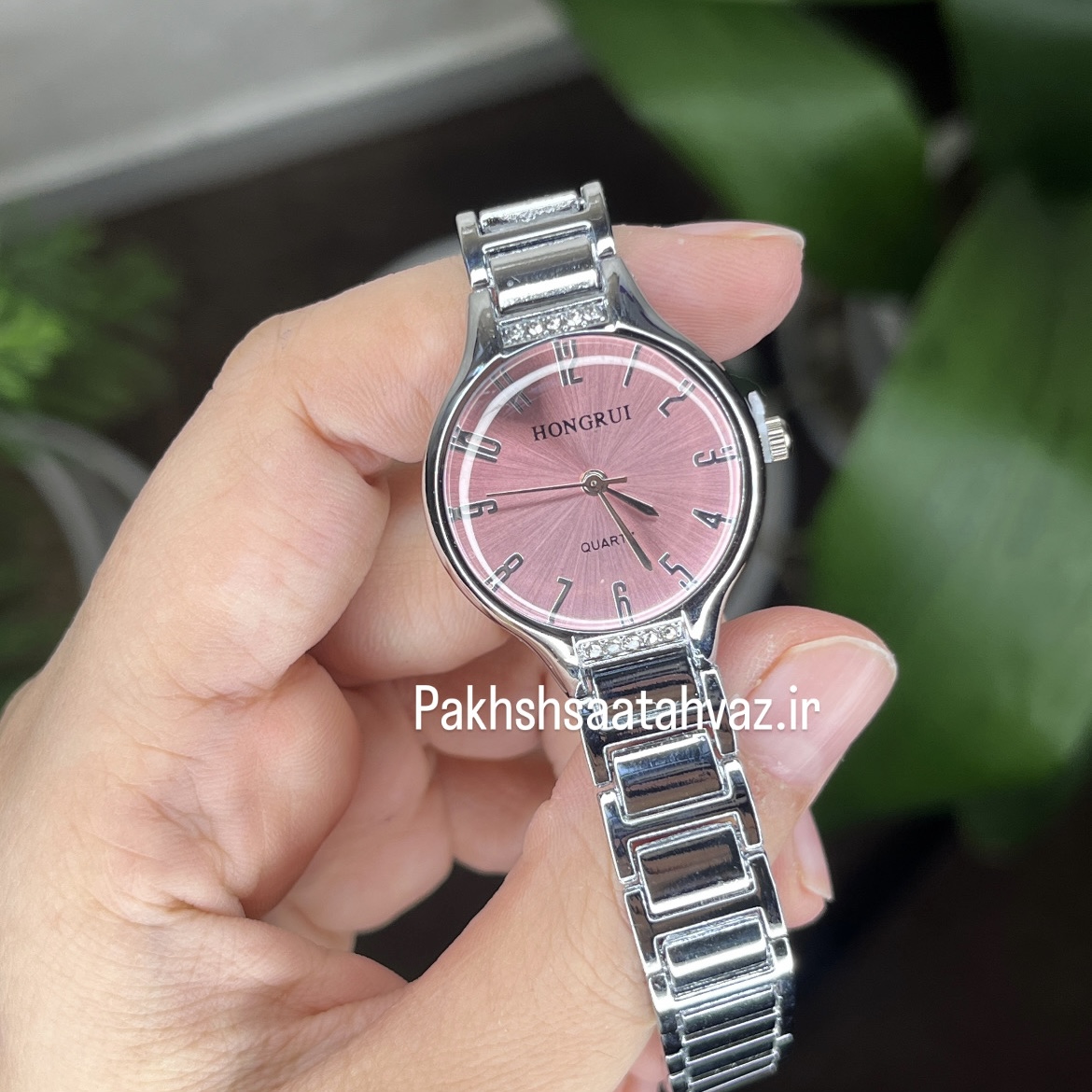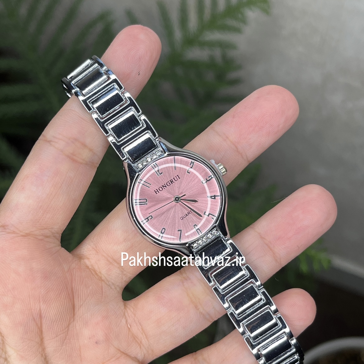 ساعت هانگری زنانه و دخترانه بند سیلور صفحه صورتی ملیح