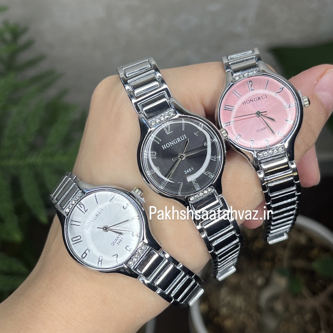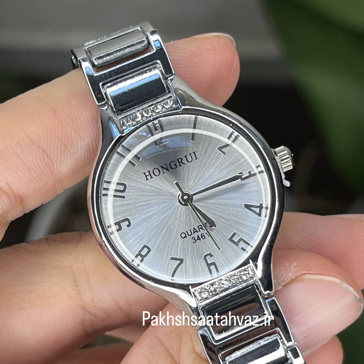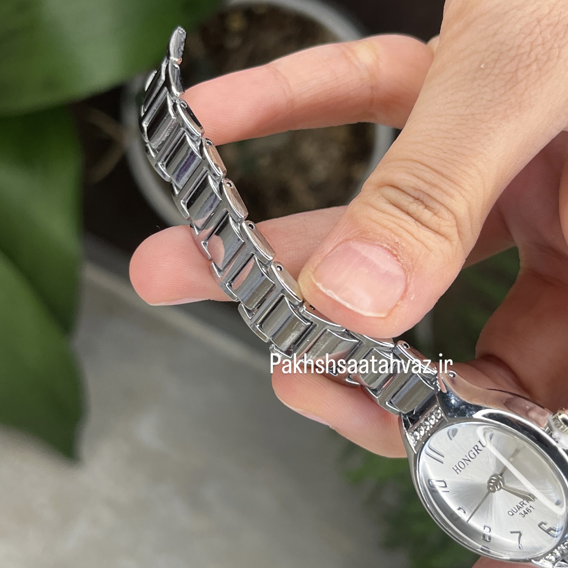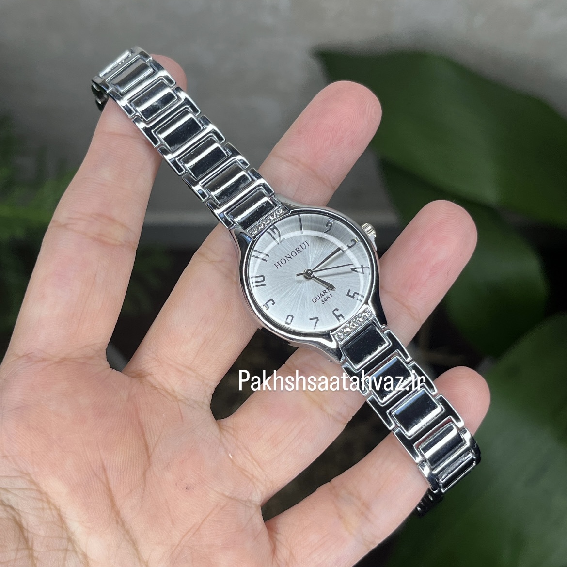ساعت هانگری زنانه و دخترانه بند سیلور صفحه سفید صدفی