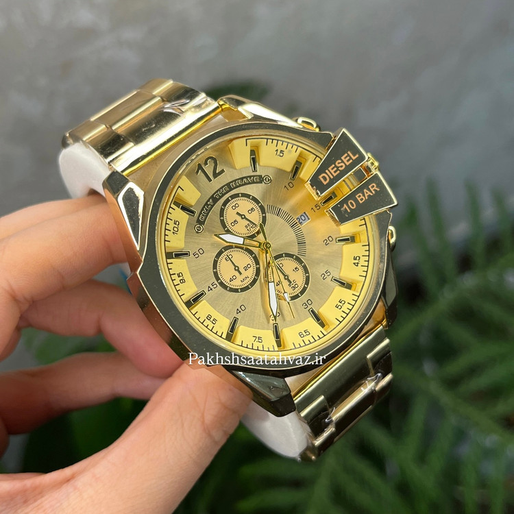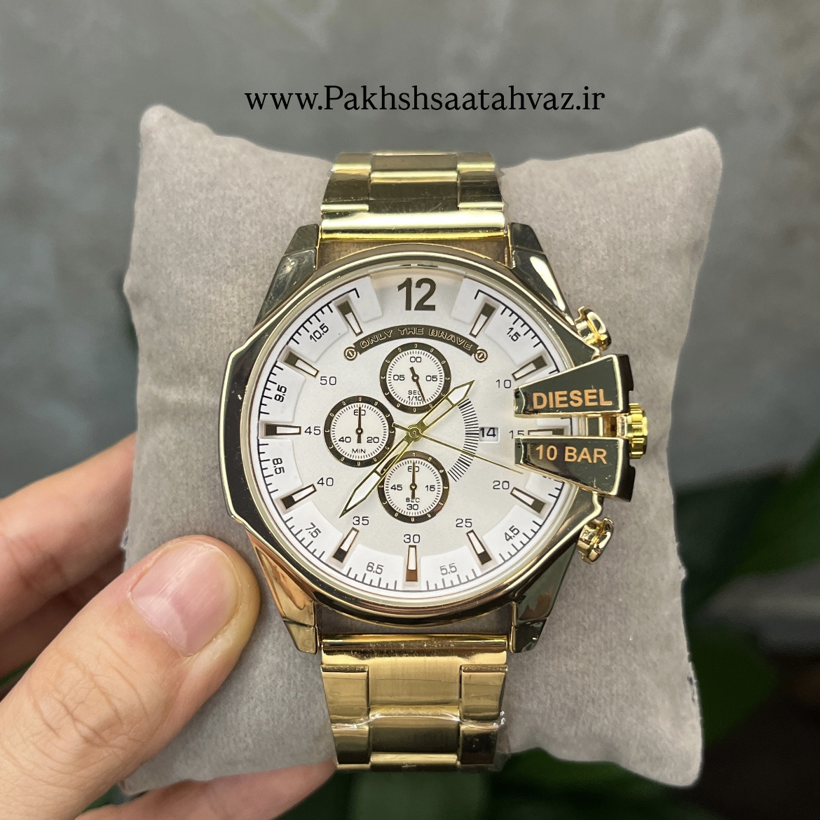 ساعت مچی دیزل شاخدار طرح سه موتوره کرنوگراف طلایی صفحه سفید