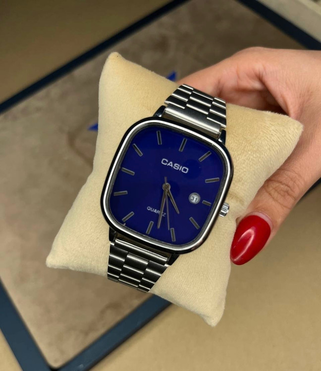 ساعت کاسیو اولدمانی مربع مردانه –سیلور صفحه ابی