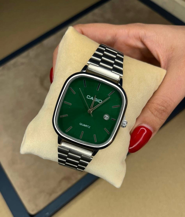 ساعت کاسیو اولدمانی مربع مردانه –سیلور صفحه سبز