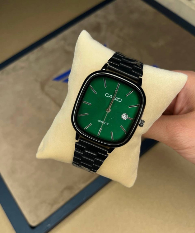 ساعت کاسیو اولدمانی مربع مردانه –مشکی صفحه سبز