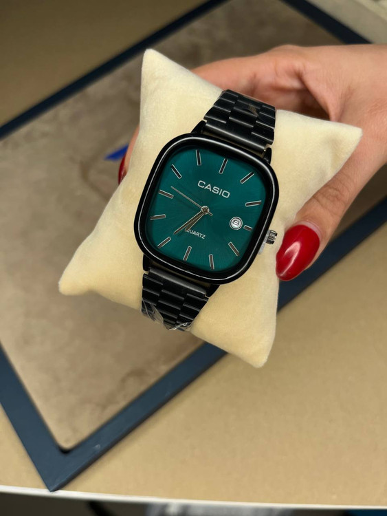ساعت کاسیو اولدمانی مربع مردانه –مشکی صفحه سبز کله غازی