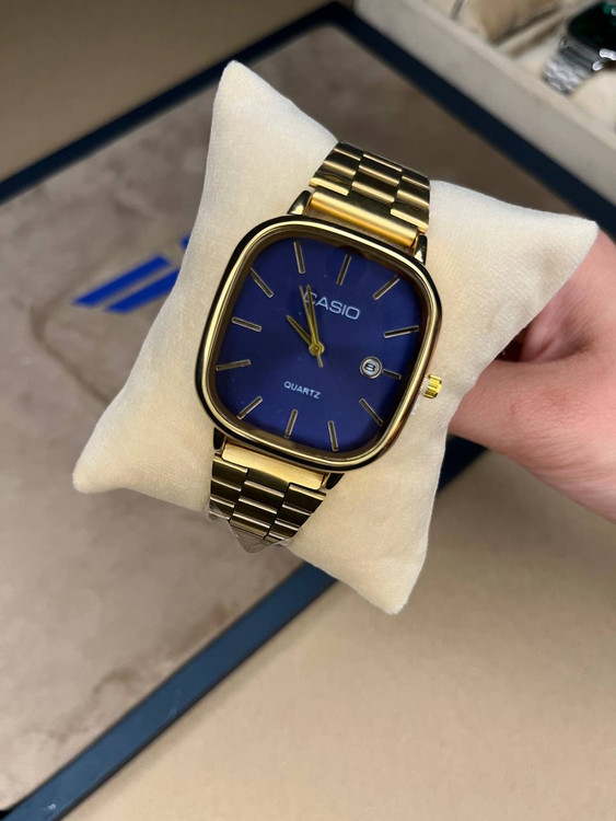 ساعت کاسیو اولدمانی مربع مردانه –طلایی صفحه ابی