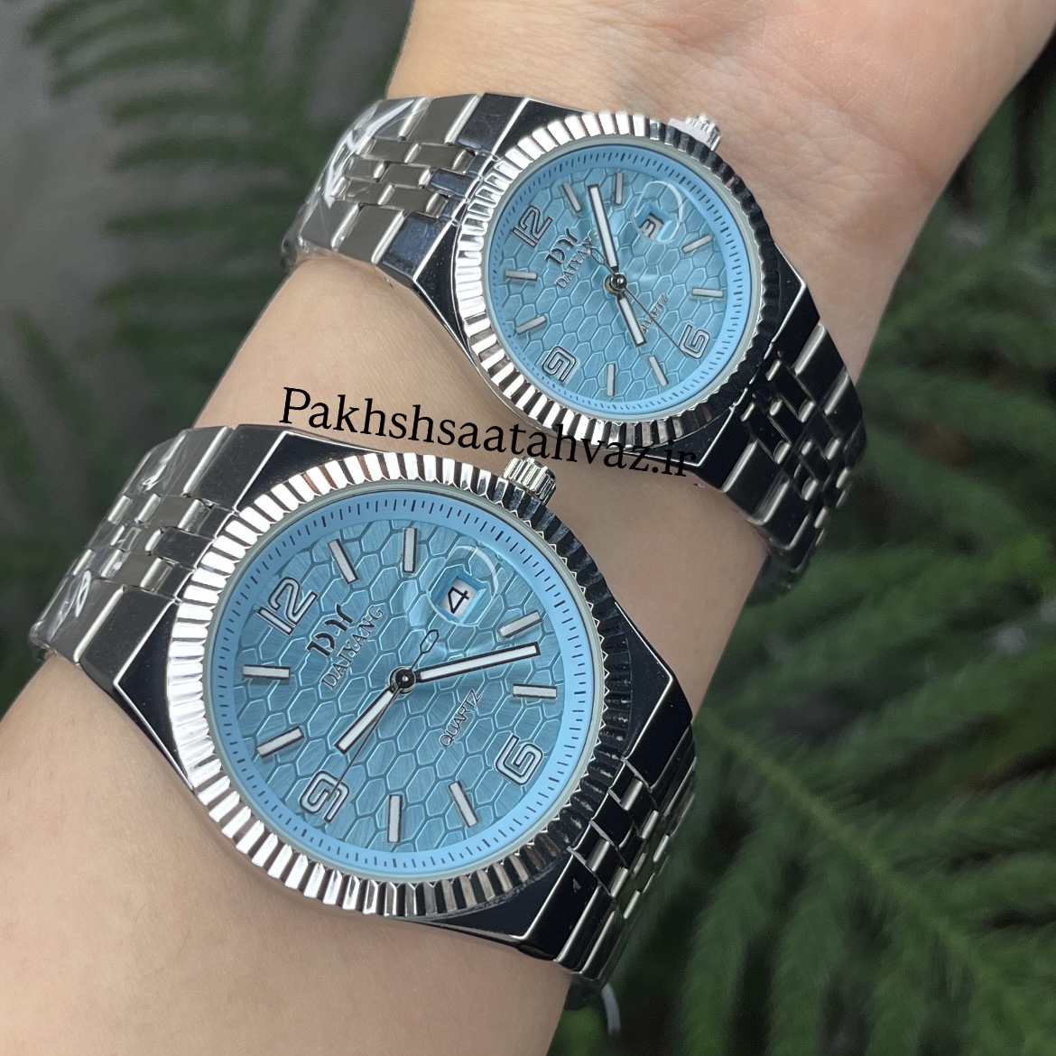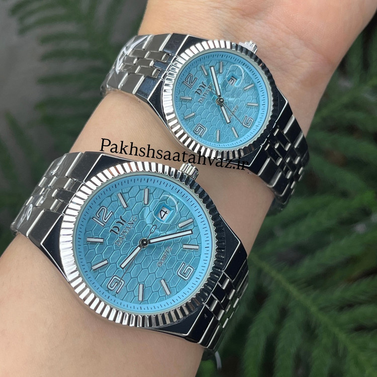 ست ساعت مچی مردانه و زنانه کیفیت درجه ۱ - قفل مخفی - رنگ تیفانی - موتور پرس